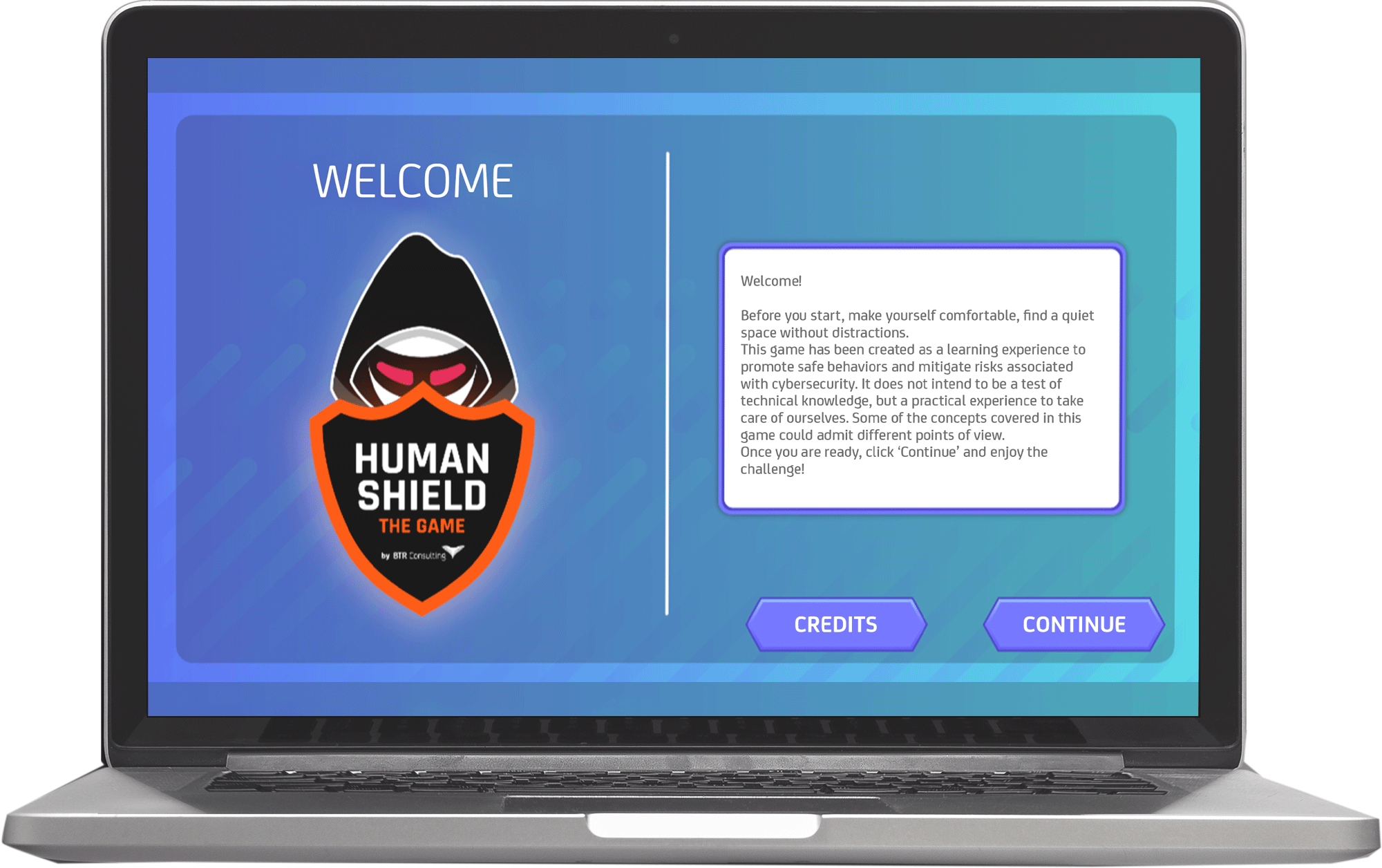 In this video game, ‘Human Shield: the game’ , the collaborator will learn techniques and tricks to protect himself and his organization from cyberattacks.